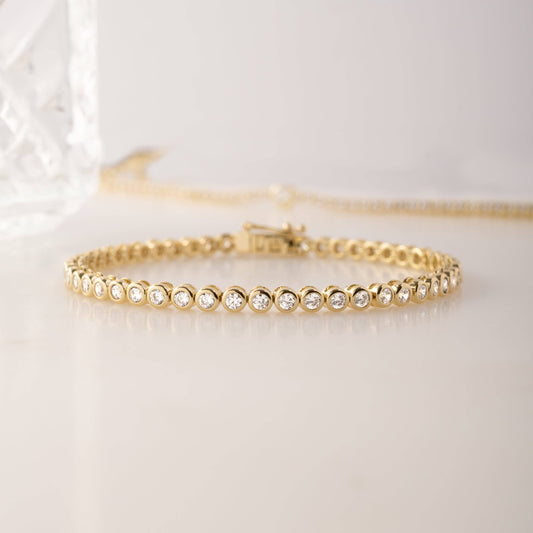 Round Bezel Gold Tennis Bracelet