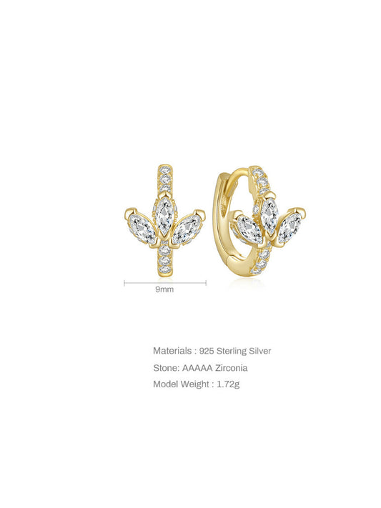 E V A Sterling Silver Leaf Huggies
