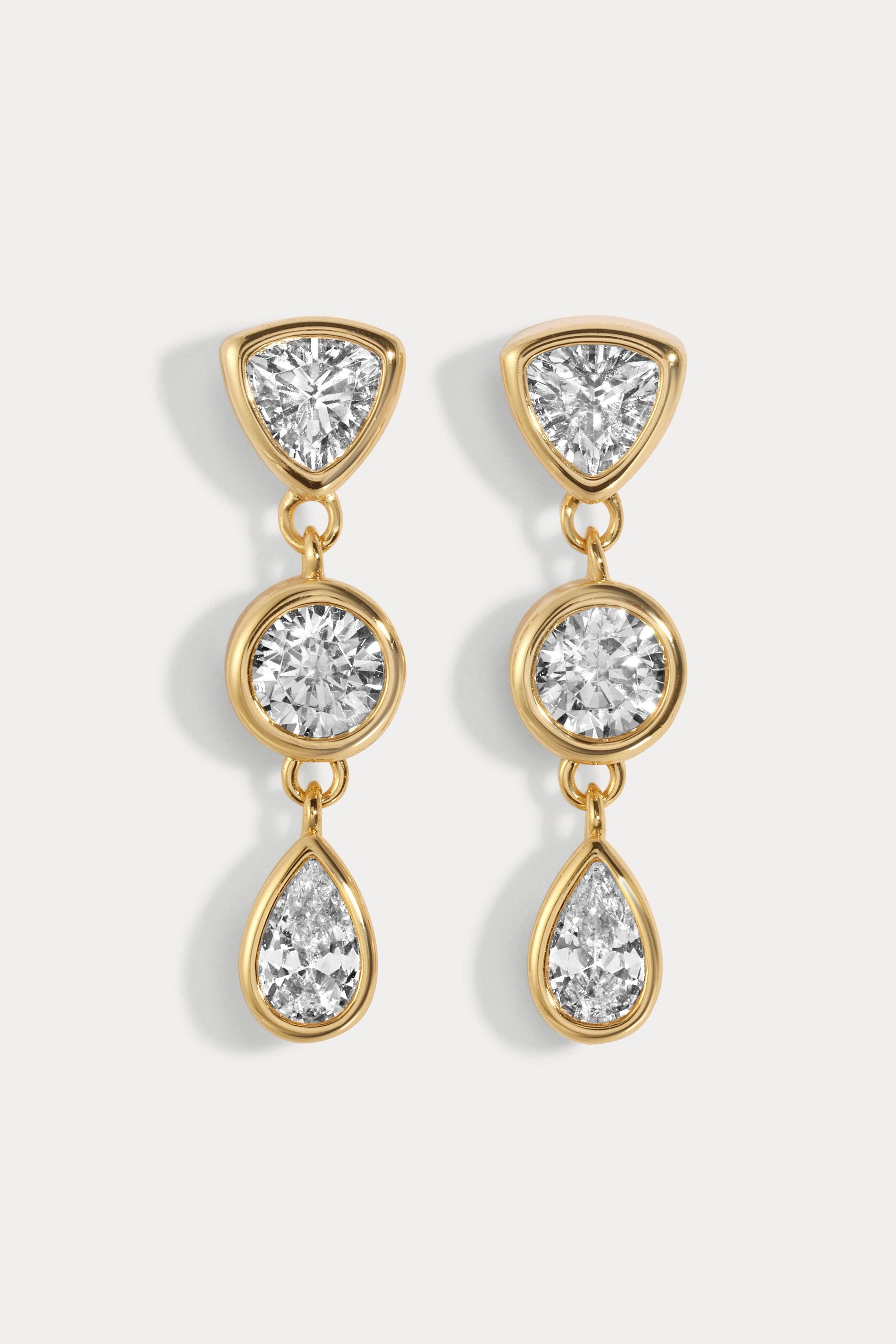 Product Details Available in 14kt gold plated brass Stones are white cz and measure 4.0mm - 5.0mm each Product weight is 1.0 gram per earring Post fastening for pierced ears Sold as a pair Size & Fit Model is 5' 9" with 33" bust, and 25" waist Product Care: METAL:Use a soft cloth to gently wipe clean, then remove any remaining impurities with mild diluted soap. Rinse with warm water and dry thoroughly before storing in the provided jewelry pouch. Do not use abrasive cleaners, steamers or ultrasonic machines. GEMSTONE:Avoid contact with perfumes, hairsprays or other chemicals. Clean with a moistened cloth. Do not use chemical jewelry cleaners.