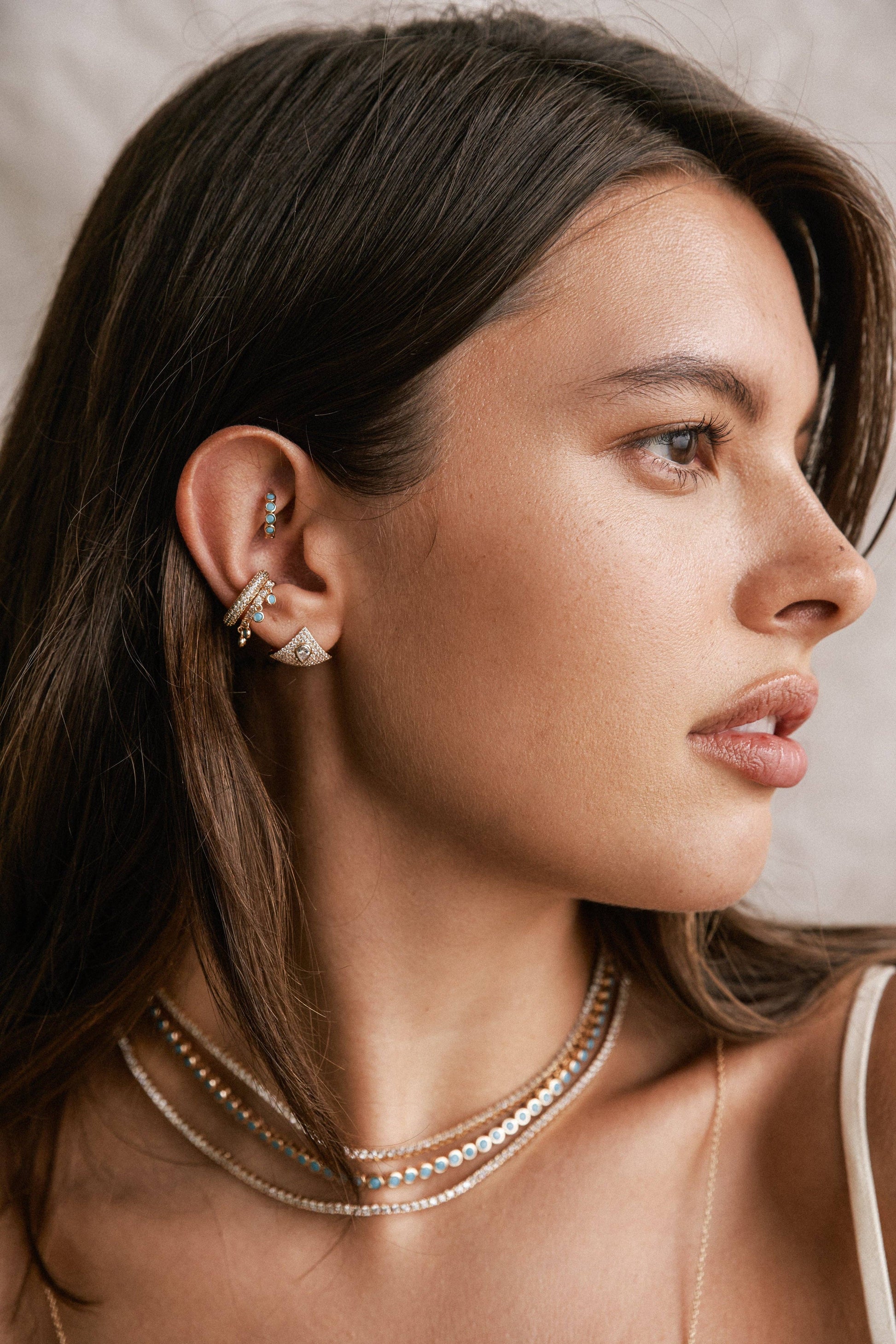 Pave Huggie Ear Shield embellished by a Pear shaped white-cz
