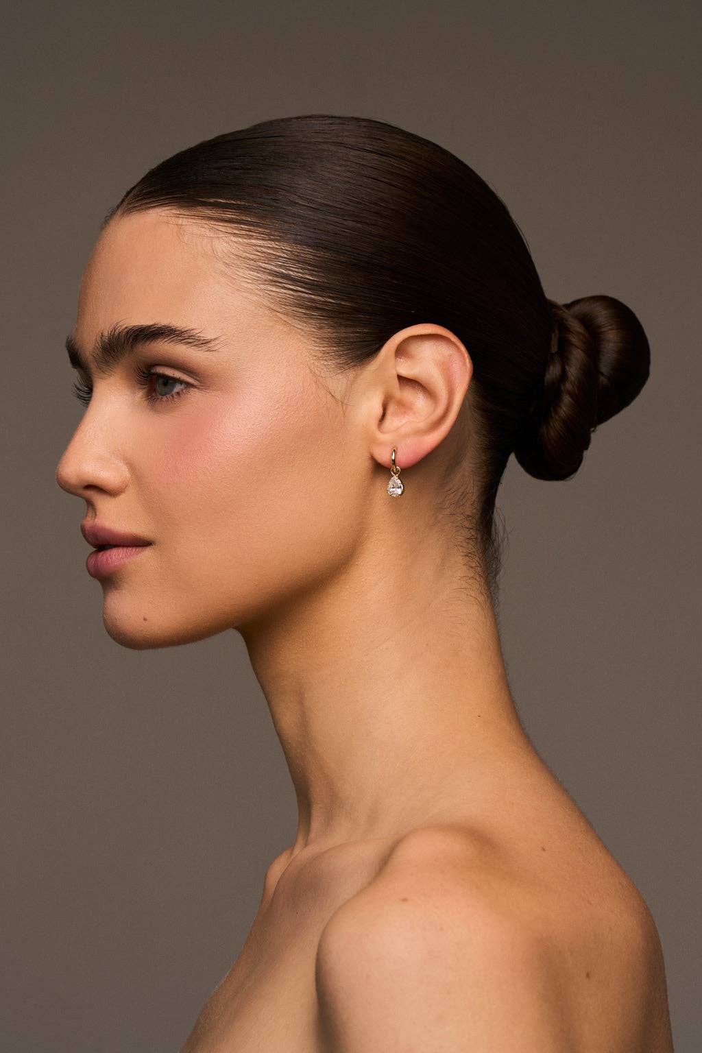Classic, minimal, and endlessly versatile. These sleek huggies were designed to be the “second skin” earring you never take off. Huggies come in two sizes. Pick the size that’s perfect for you! Product Details Available in 14kt gold plated brass Stones are white cz and measure 8.0mm x 6.0mm each Snap Hinge Closure Sold as a pair Size & Fit Model is 5' 10.5" with 31.5" bust, and 25" waist Product Care: METAL: Use a soft cloth to gently wipe clean, then remove any remaining impurities with mild diluted soap. Rinse with warm water and dry thoroughly before storing in the provided jewelry pouch. Do not use abrasive cleaners, steamers or ultrasonic machines. GEMSTONE: Avoid contact with perfumes, hairsprays or other chemicals. Clean with a moistened cloth. Do not use chemical jewelry cleaners.