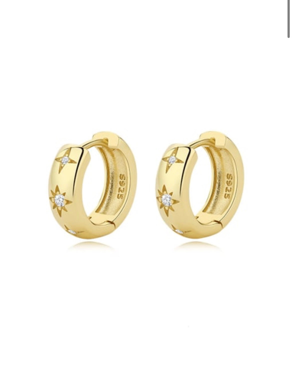 EVA Jewellery- Thick Star Detail, Sterling Silver or Sterling silver with gold plating huggies set with cubic zirconia. Wear on their own for a more delicate look or stack with other mini hoops and studs.